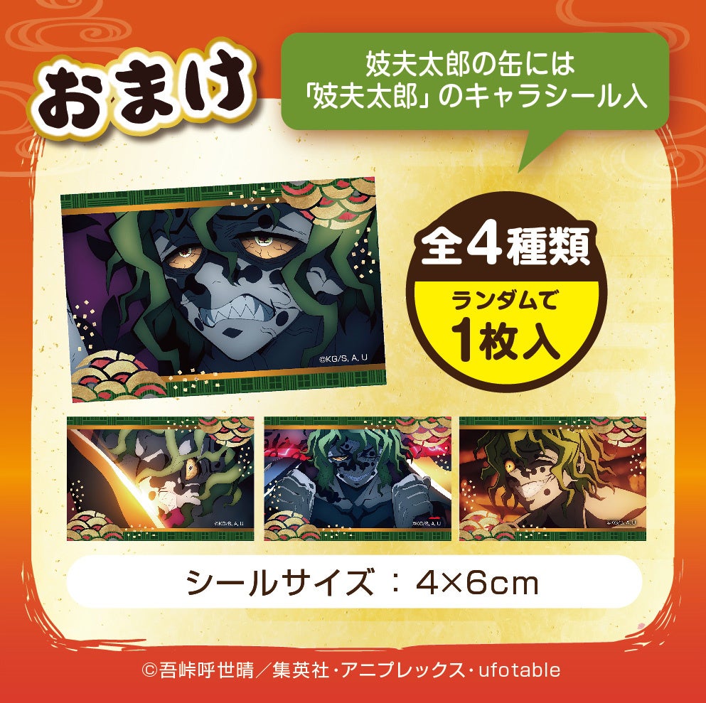 さらに、おまけで宇髄天元のエッグ缶には「宇髄天元のキャラシール」、妓夫太郎のエッグ缶には「妓夫太郎のキャラシール」がランダムで1枚入っております。