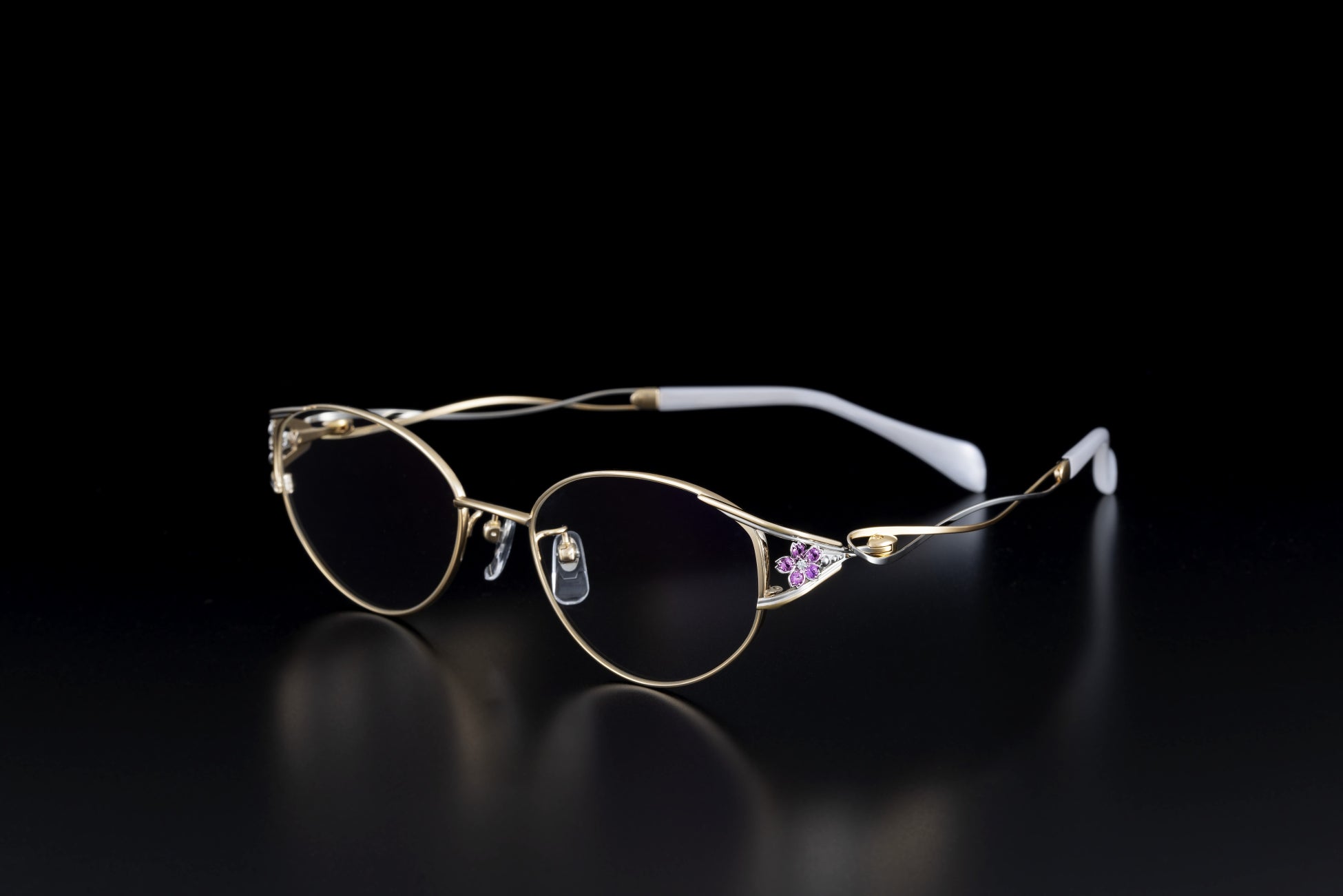 桜のつぼみをイメージしてデザインされたモデルです。色の濃度も、ラウンドとマーキスとシェイプも異なる3つのピンクサファイアが今まさに花開きそうにふっくらと丸く輝きを放ちます。ダイヤモンドを配したタイプ(GPD)はカラーレスでノーブルな印象に。ツーポイント(フチなし)タイプなので素顔に近い印象でかけていただけます。