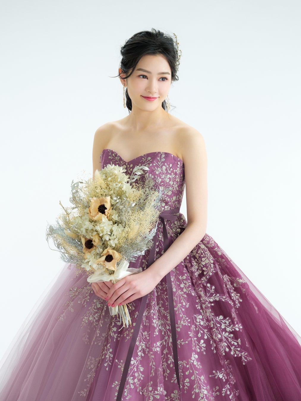 ヘアメイクアーティストがご提案するドライフラワーアクセサリーブランド〈yUi〉のブーケです。