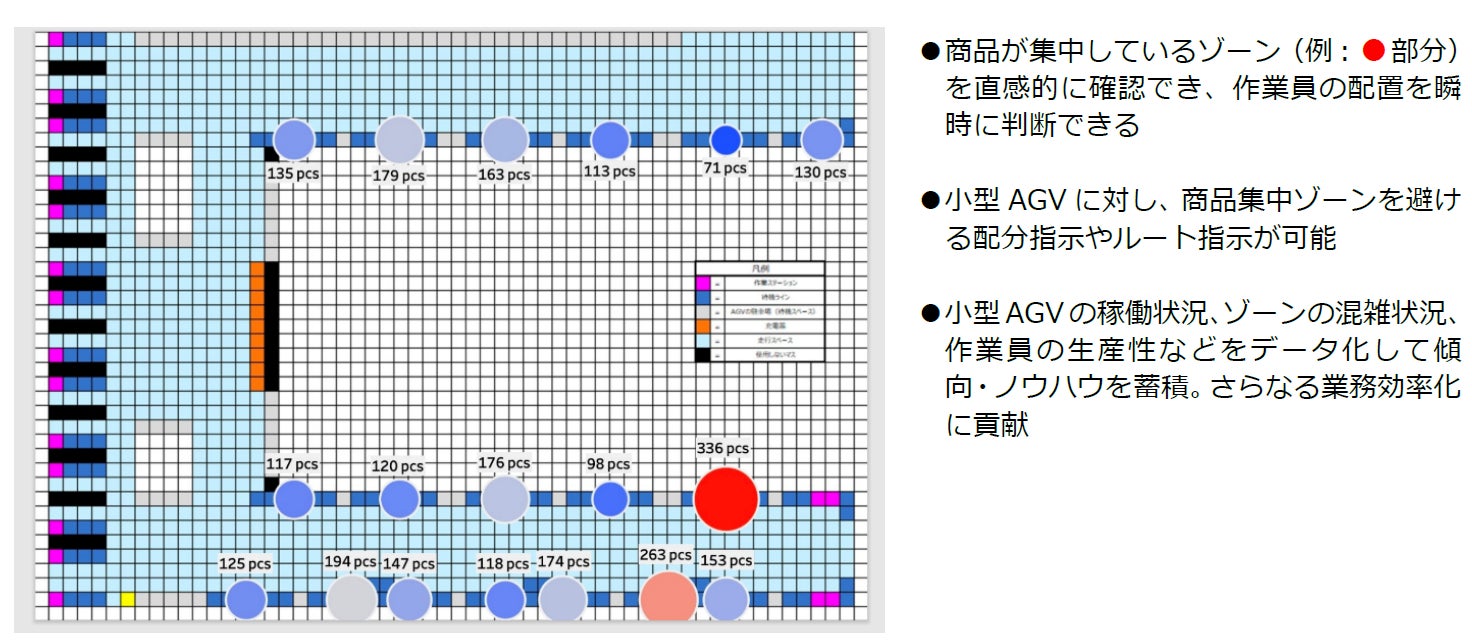 2.繁忙時の物量増加には、小型AGVの稼働台数を増やすなど、柔軟な対応が可能。