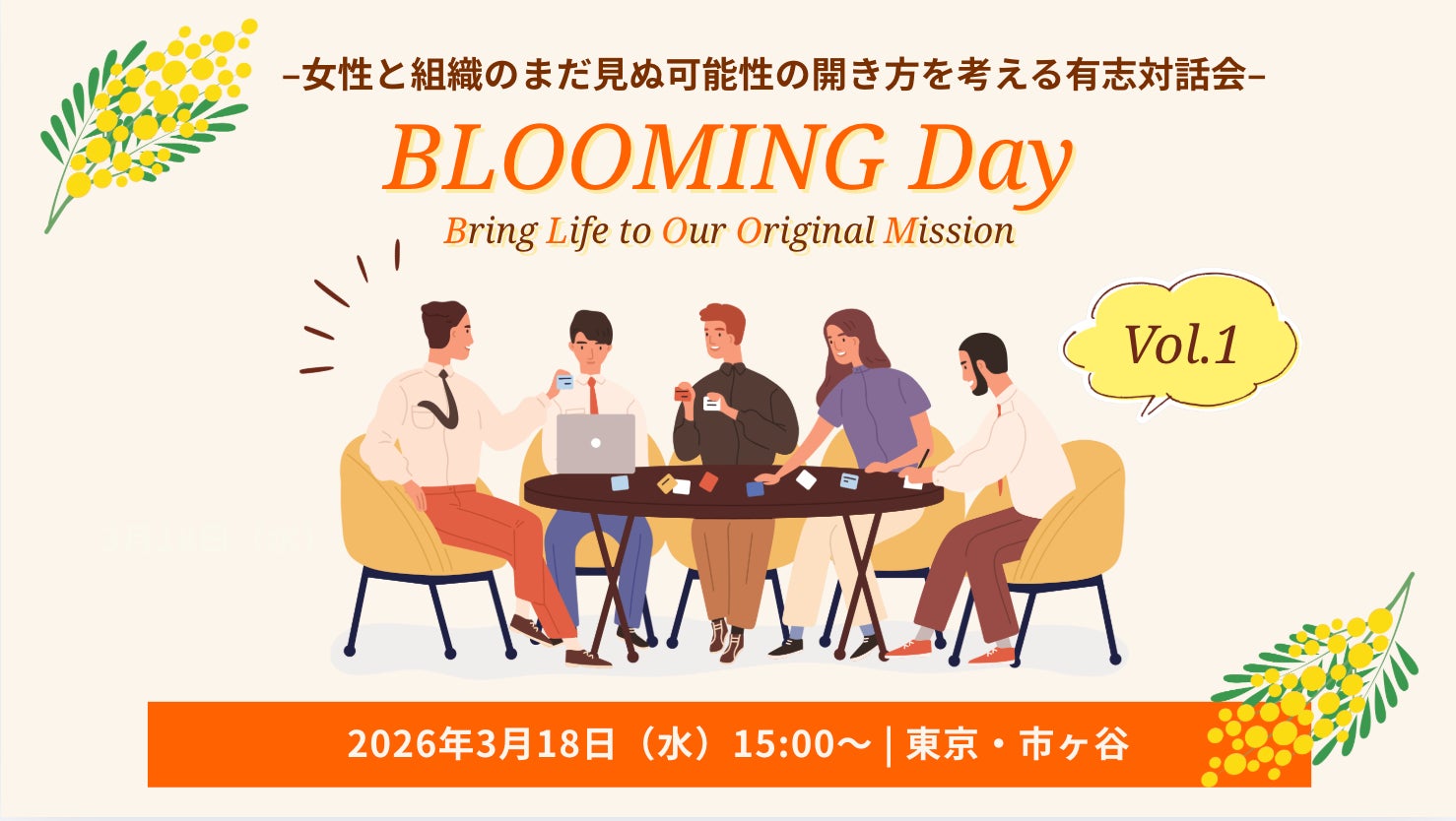 michinaru株式会社(本社:東京都千代田区、代表取締役:菊池龍之)は、企業の枠を越えて立ち上がった「BLOOMプロジェクト」の発起人チームとともに、国際女性デーに寄せて「BLOOMING DAY Vol.1 -女性と組織のまだ見ぬ可能性の開き方を考える越境対話会- 」を2026年3月18日(水)にDNPプラザ・コラボレーションゾーン(東京・市ヶ谷)にて開催いたします。