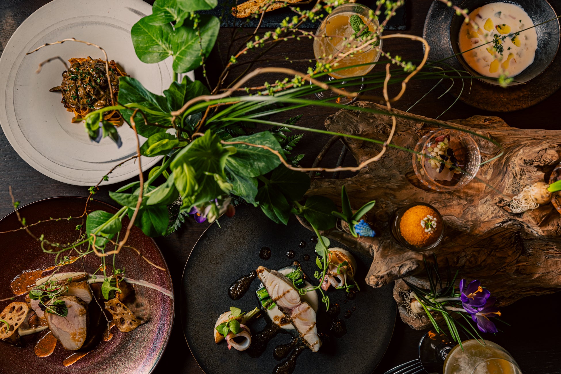 また、地域に根差した「GastroArt Localism」の考えに基づき、西伊豆の地を一つの作品として捉えています。地元の食材を主役にした繊細で創造的な料理は、一皿ごとに土地の文化や風景、そして伝統の深い息吹を伝えるものです。
