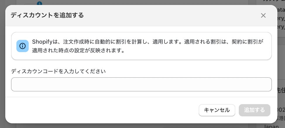 ※Shopifyは注文作成時に自動的に割引を計算・適用します。