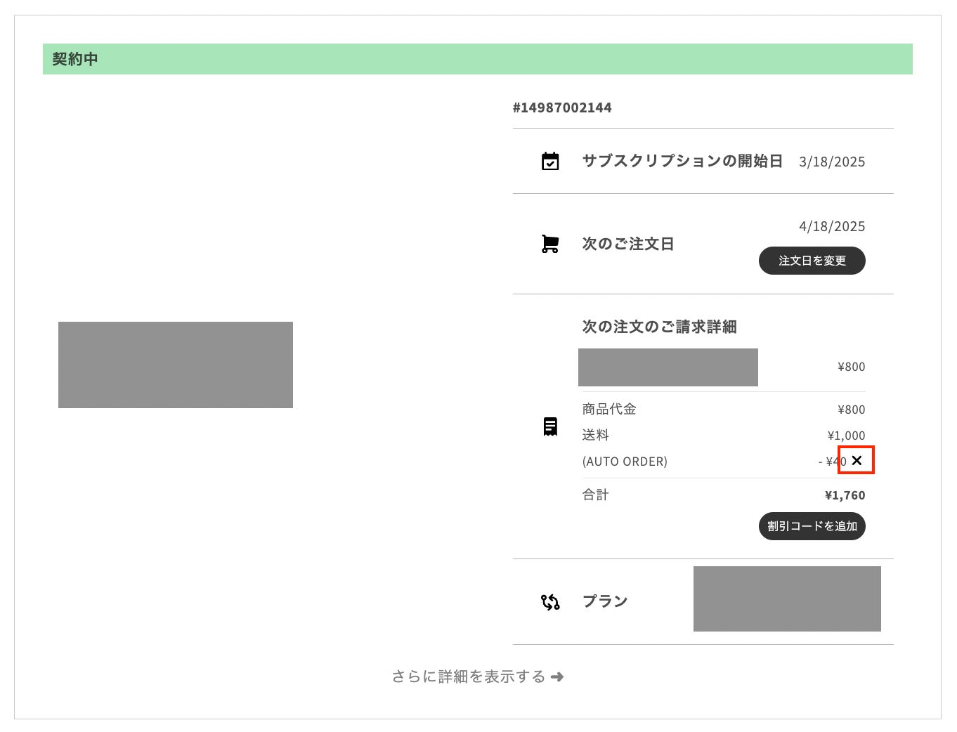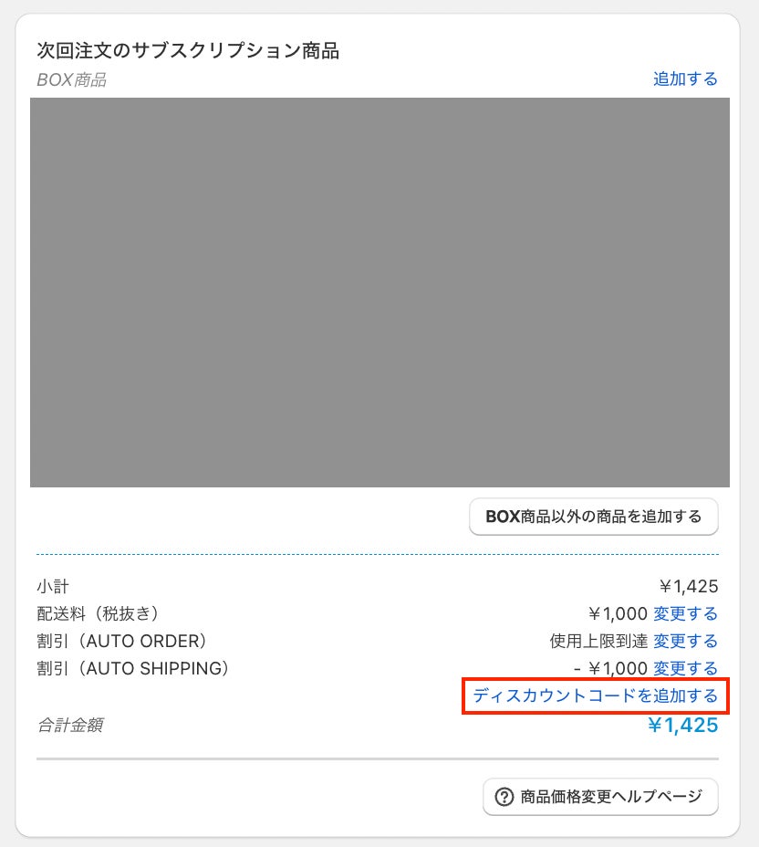 アプリ管理画面およびお客様アカウントページから、契約にShopifyディスカウントのクーポンコードを追加できるようになりました。