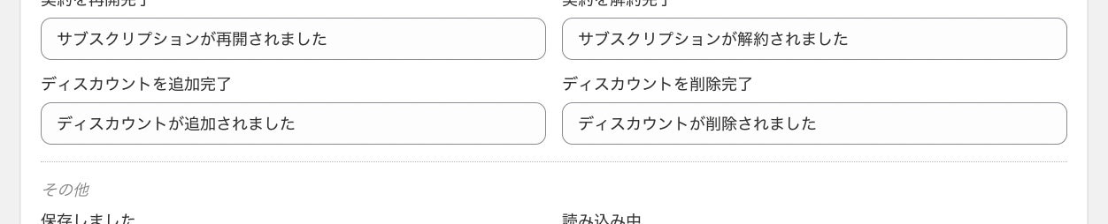 ※ また、ディスカウントコード削除時のテキストや翻訳も、アプリ管理画面のテキスト、翻訳設定ページから変更することが可能です。