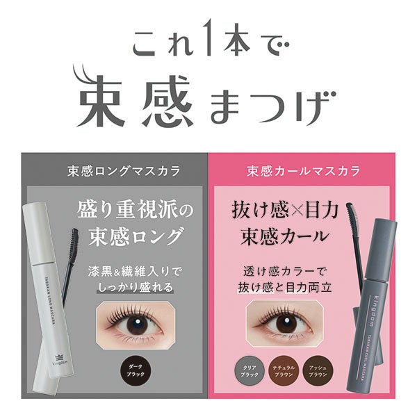 大ヒット!キングダムから【束感ロングマスカラ】誕生!すーっと、ダマなく伸びる束感まつげに!累計出荷数80万個突破※1【束感カールマスカラ】姉妹品。2024年10月4日発売。
