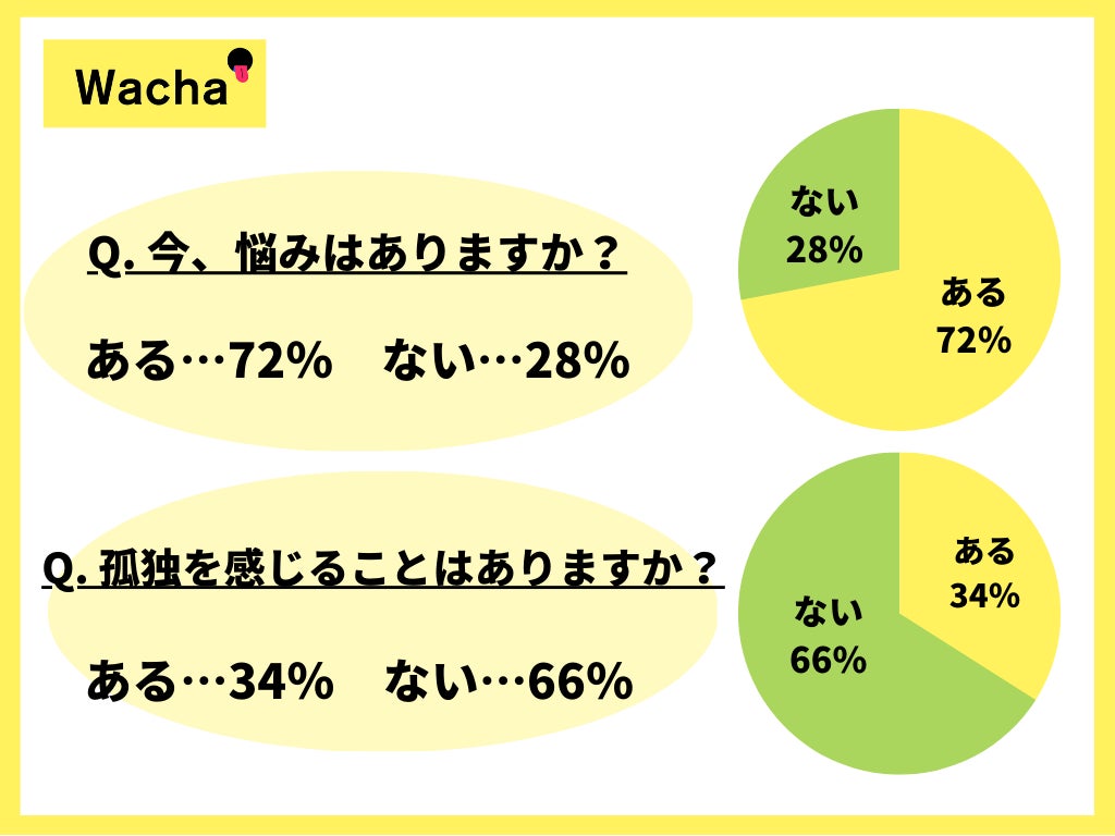 昨今、孤独を癒すツールとして認知度が高まっているペット育成アプリや、複数人で通話しながらプレイできるゲームを始め、孤独や人間関係の悩みを解消するための「人間レンタルサービス」や「代行サービス」が続々と登場しています。依頼主の彼氏としてデートをする「レンタル彼氏」や、依頼主の友人として食事やお出かけをしたり、趣味につきあったりする「レンタルフレンド」、冠婚葬祭などの行事に家族として人を派遣する「レンタル家族」など、様々なシーンに応じたサービスの展開がされています。音声ソーシャルライブアプリ「Wacha(ワチャ)」では、顔や背景が映らない気軽さと、テキストでは表現が難しい「感情」が伝わりやすいという特徴を持つ“音声”に着目し、音声が孤独や悩みを解消する手段となり得るか、人々が持つ悩みや孤独に関するアンケート調査を実施いたしました。