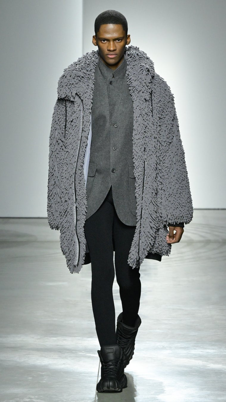 今回のコレクションテーマは、“アーバン・レイヤリング”です。「重ね着」は、日本文化を織り成す必要不可欠な要素です。非常に軽い襦袢から重さの異なる衣を重ね合わせ、幅広の帯で留める着物はまさにその象徴であり、伝統的に受け継がれてきました。23年秋冬シーズンは、この「重ね着」と、日本のファッション文化にとって欠かせないエッセンスである、オーバーサイズ感や流れるようなテーラリングが相まったコレクションとなっています。