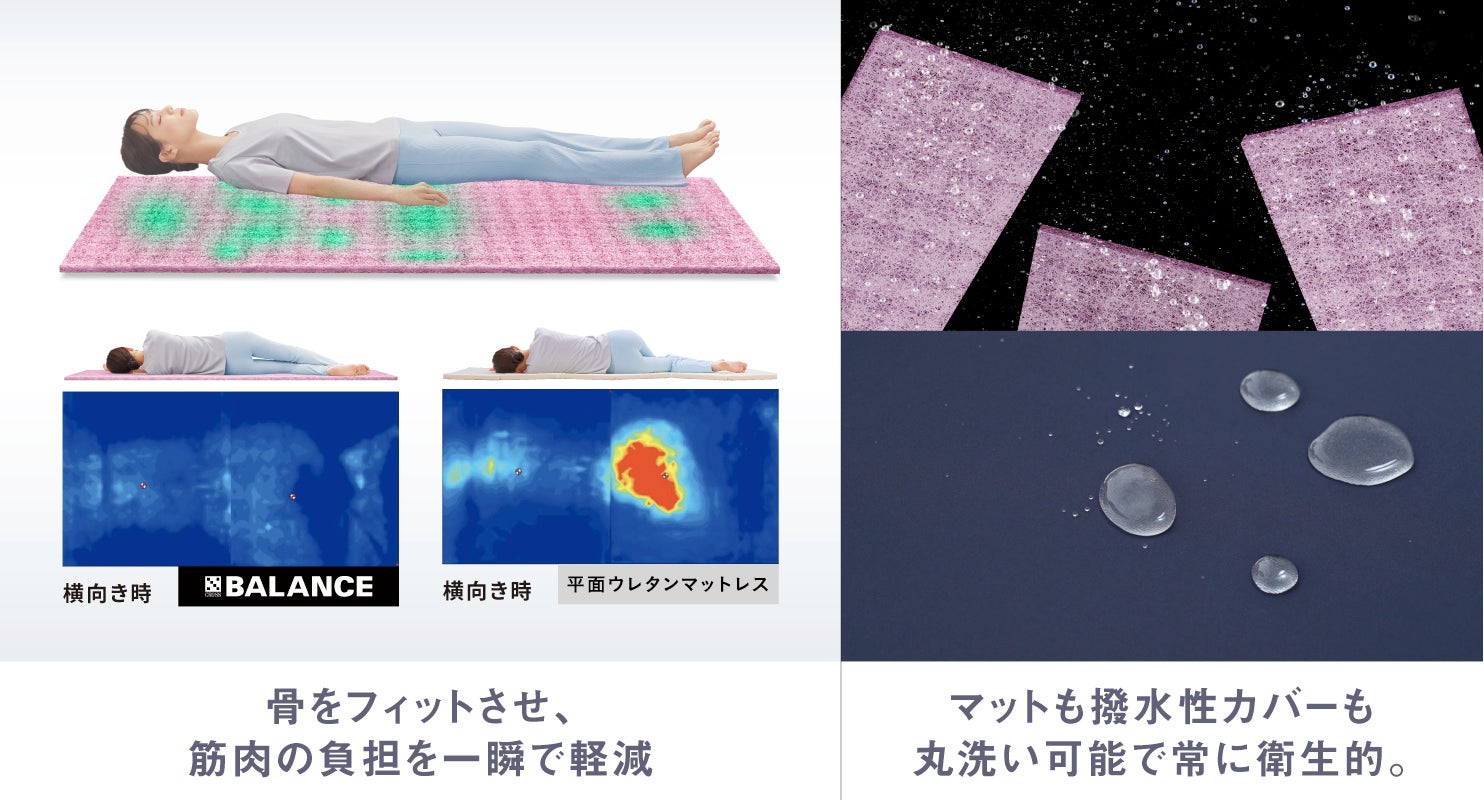衛生と環境配慮:100%リサイクル可能なECO素材を採用。マットも撥水性カバーも丸ごと水洗いできるため常に衛生的で、整体院や保育園などでも採用されています。