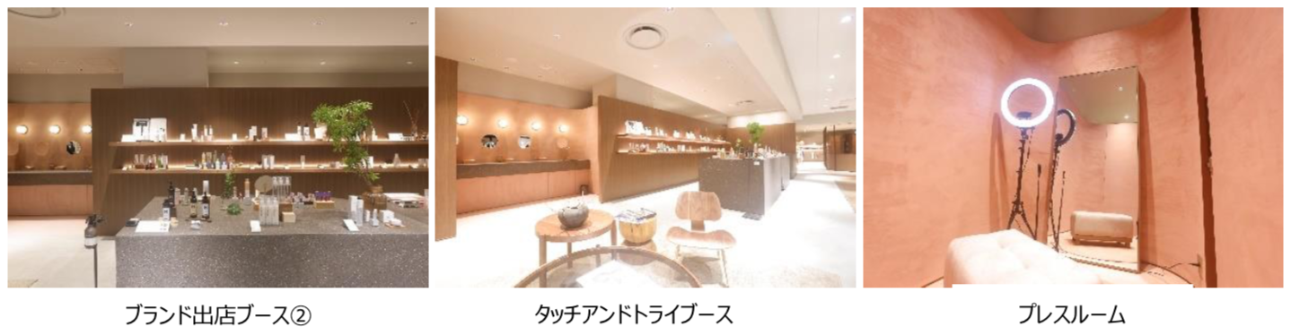 大小さまざまな100のブースを設け、D2Cブランドのオフライン出店や、ポップアップイベントの会場として利用可能。パウダールーム併設のタッチアンドトライブースや、プレスルーム、SNS LIVE配信用機材も完備し、オンライン・オフライン共にPRをサポート。通常のテナント出店時に必要となるスタッフ、内装や什器、VND、ショッピングバッグ等一切準備する必要なく、低コストで出店することが可能です。ポップアップイベント、ショールームやテストマーケティングにもおすすめです。