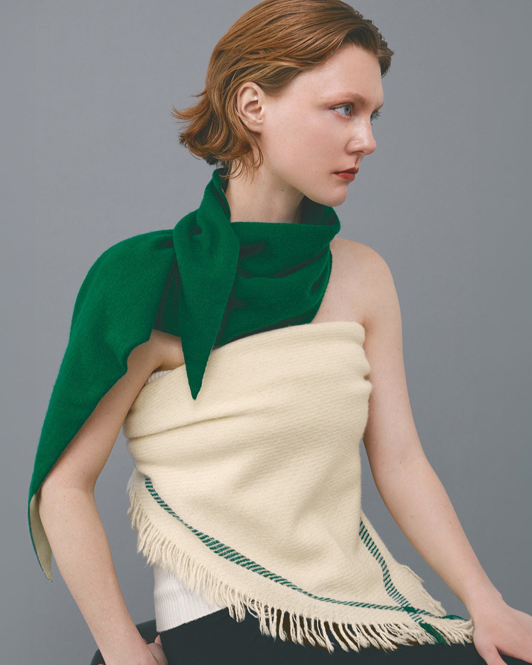 カシミヤ製品特有の柔らかなシアー感がスタイリングの幅を広げ、華やかさを演出してくれます。 細部までバランスを考えて設計されたフリーサイズデザイン。ユニセックスで着用可能なアイテムです。