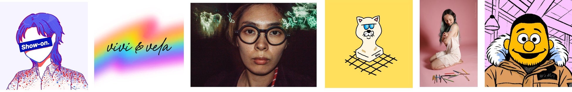 (左から)Show-on. / vivi & vela / 狩野萌 / Zun./HENTEKO LAND / BeesandButterflies /まさゑ