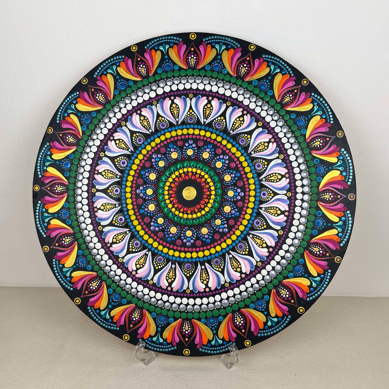 This mandala art incorporates colors from various pride flags, symbolizing unity within the LGBTQ+ community. The flowing transitions between colors celebrate specific identities as part of a greater whole, embodying the beauty of diversity, inclusion, and collective strength.