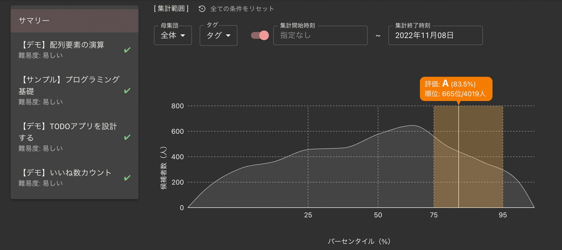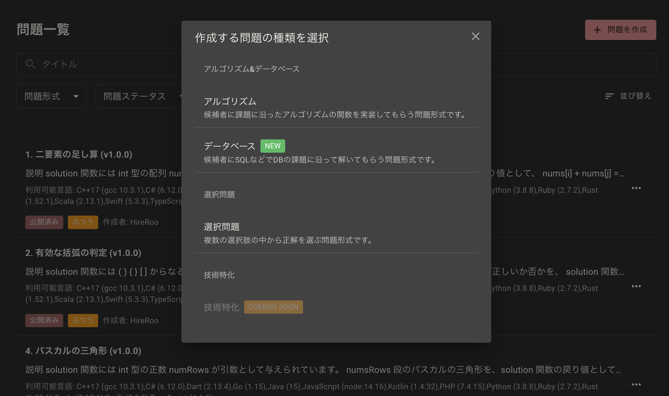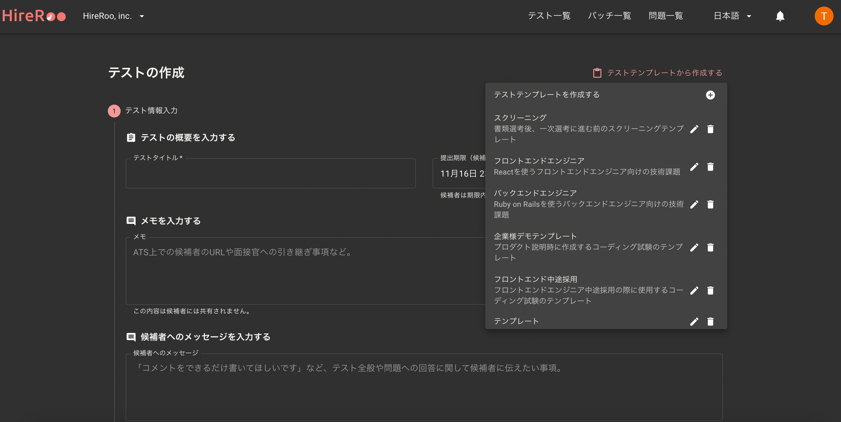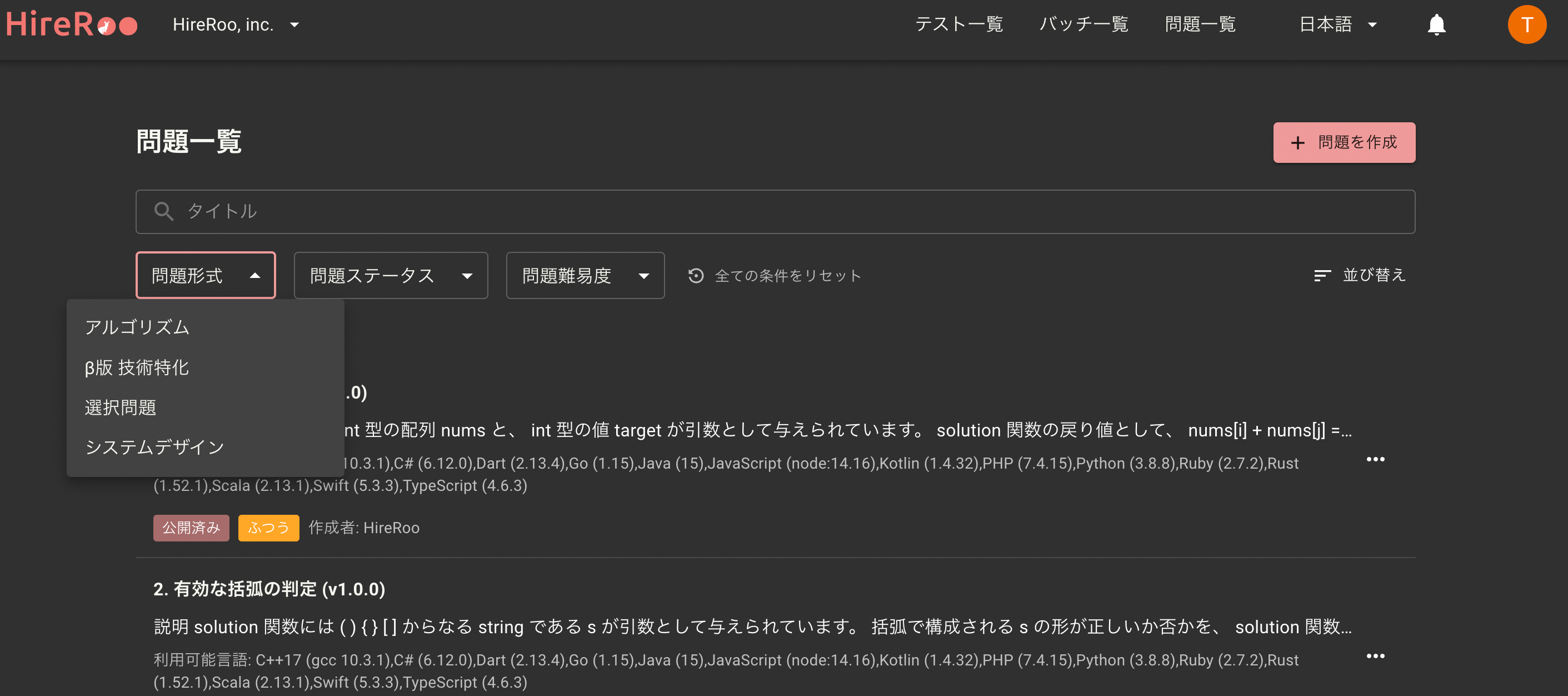 コーディング力や設計力など、採用したいエンジニア像によって測りたいスキルは異なります。HireRooには幅広い設問が豊富に揃っており、職能やレイヤーに合わせた最適な試験を作ることができます。