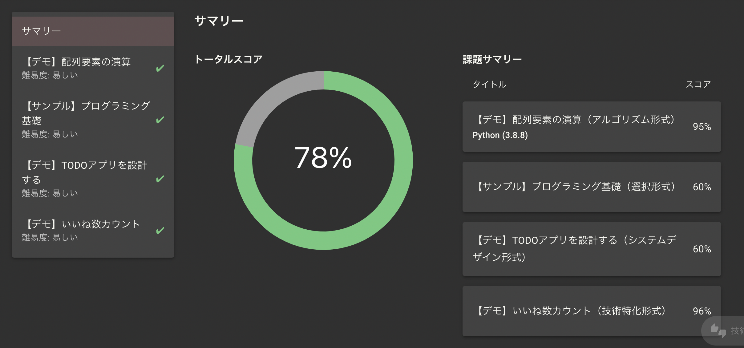 特定のフレームワーク等ピンポイントの技術力・実務的な実装力をみる形式。React, Django などでの実装。