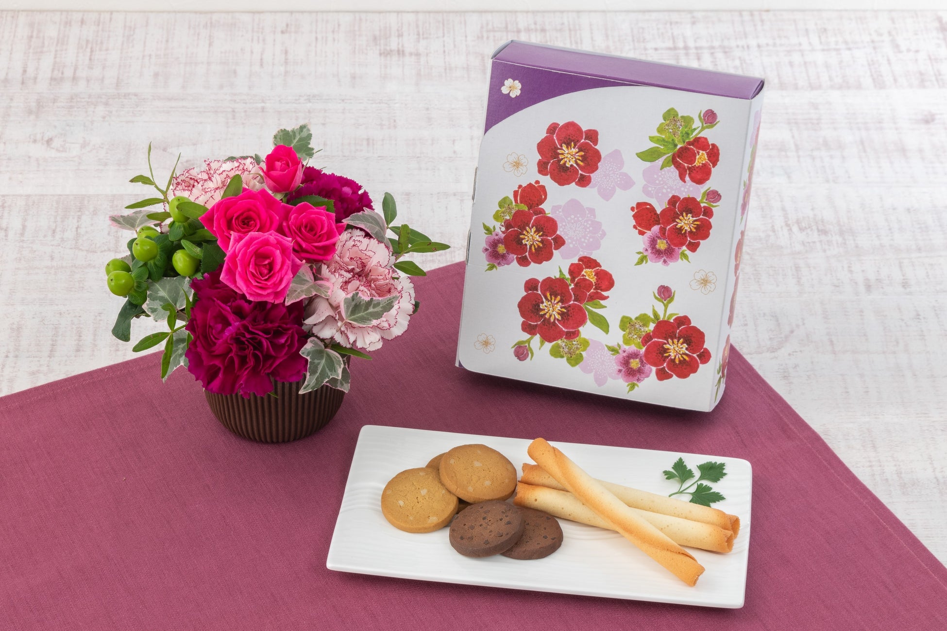 〈ヨックモック〉カドー ドゥ リベール (3種18個入) +〈日比谷花壇〉生花アレンジメント