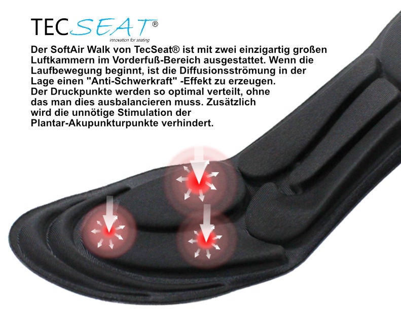 SoftairWalkは本国ドイツで「歩くベット」と呼ばれるエアインソールです。人間工学に基づいた設計で上質なベッドのようなクッション性を実現します。