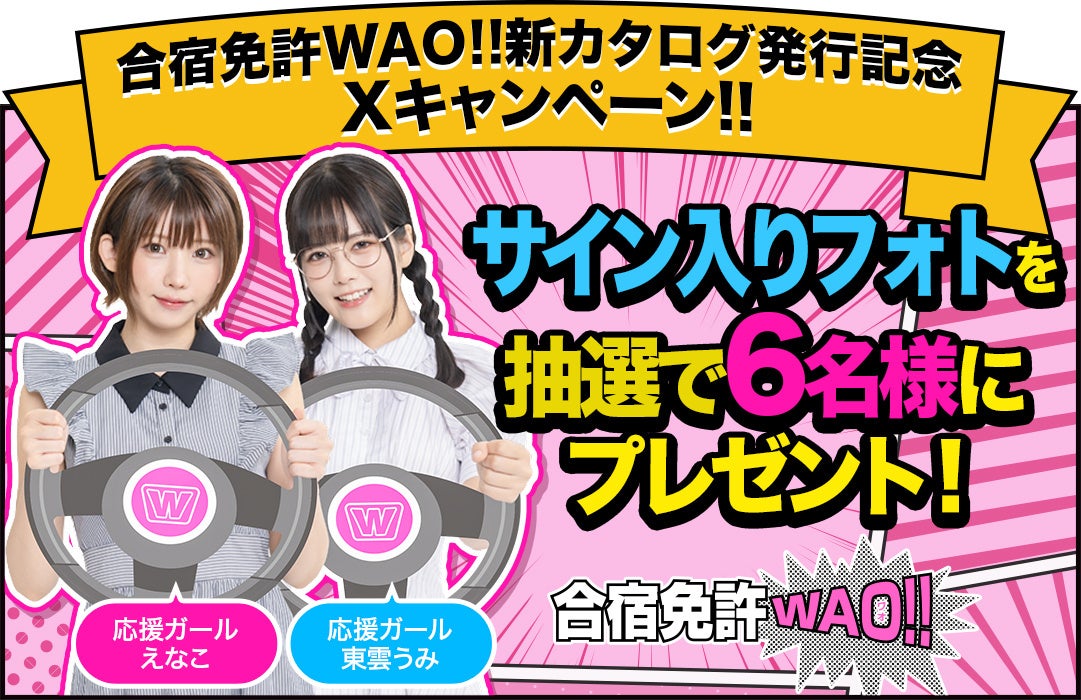 合宿免許WAO!!✕えなこ&東雲うみ★新カタログ発行記念Xキャンペーン!