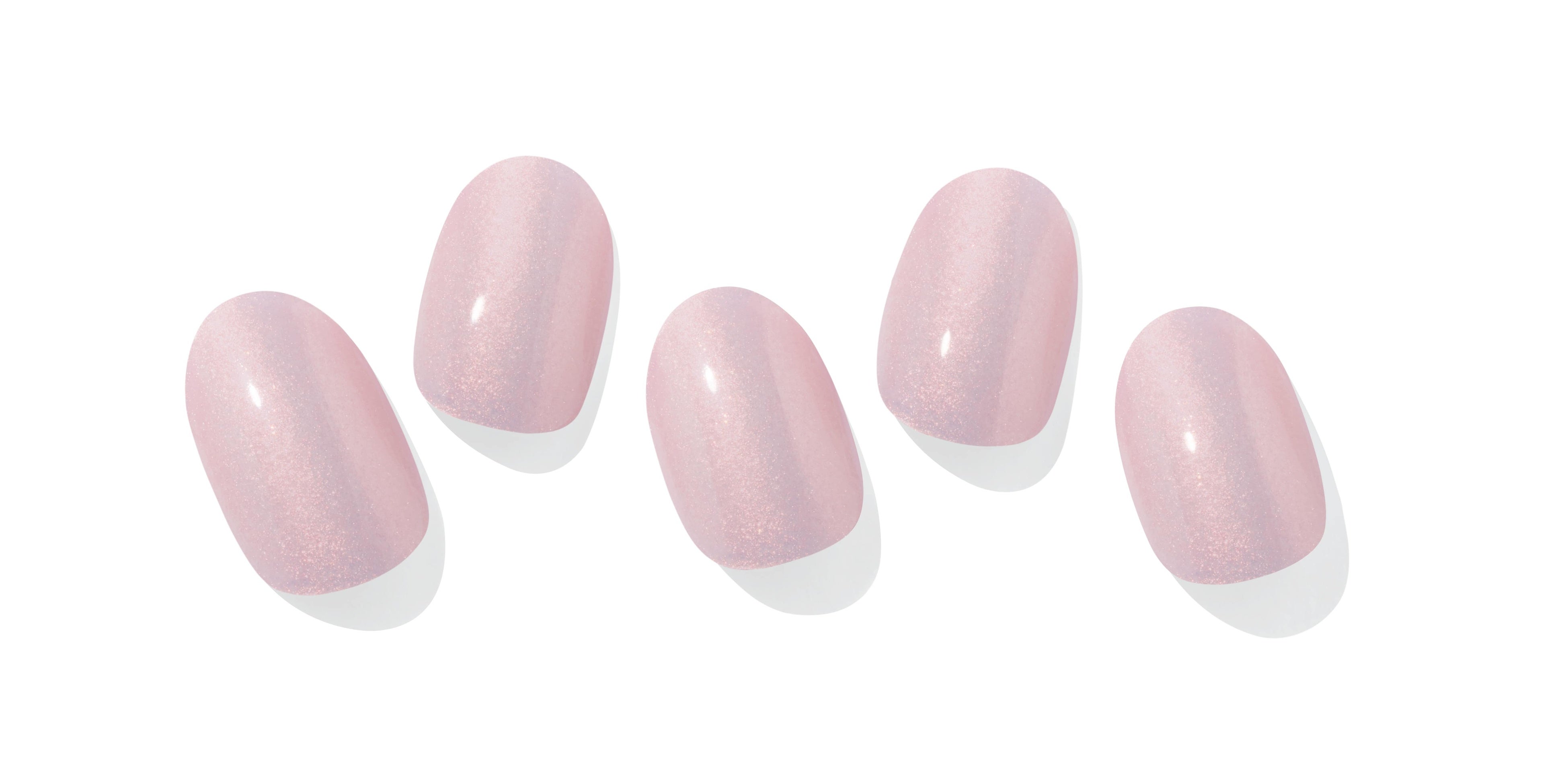 きらきらと輝きをふりまく上品ピンクネイル。肌なじみよい落ち着いたピンクに、ゴールドグリッターや金色の箔、シェルで輝きをプラス。動きに合わせ輝き、指先の表情にニュアンスを添えます。デイリー使いから、華やかシーンまでおまかせ。使い勝手のよいデザインです。