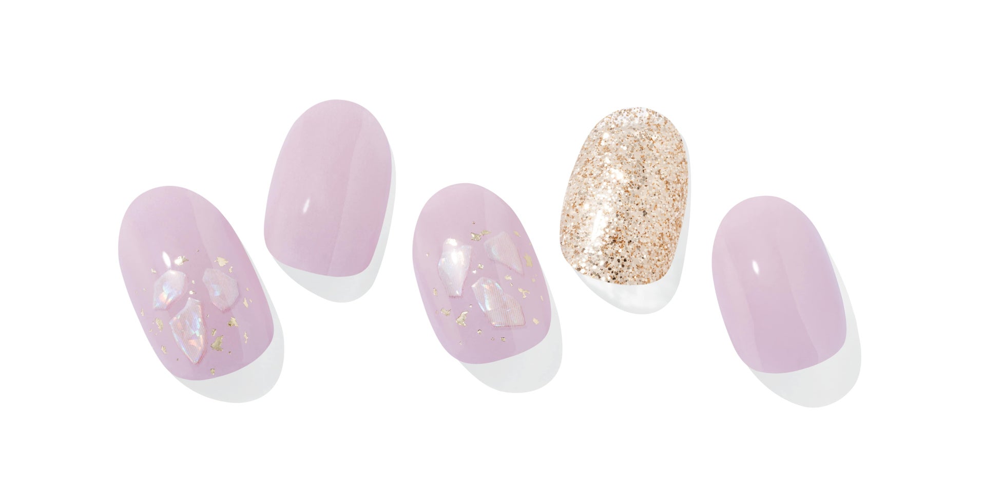 ほのかに感じるパープルカラーが、指先の透明感をグッと引き立てる。フェミニン、ソフト、エレガントな印象に。