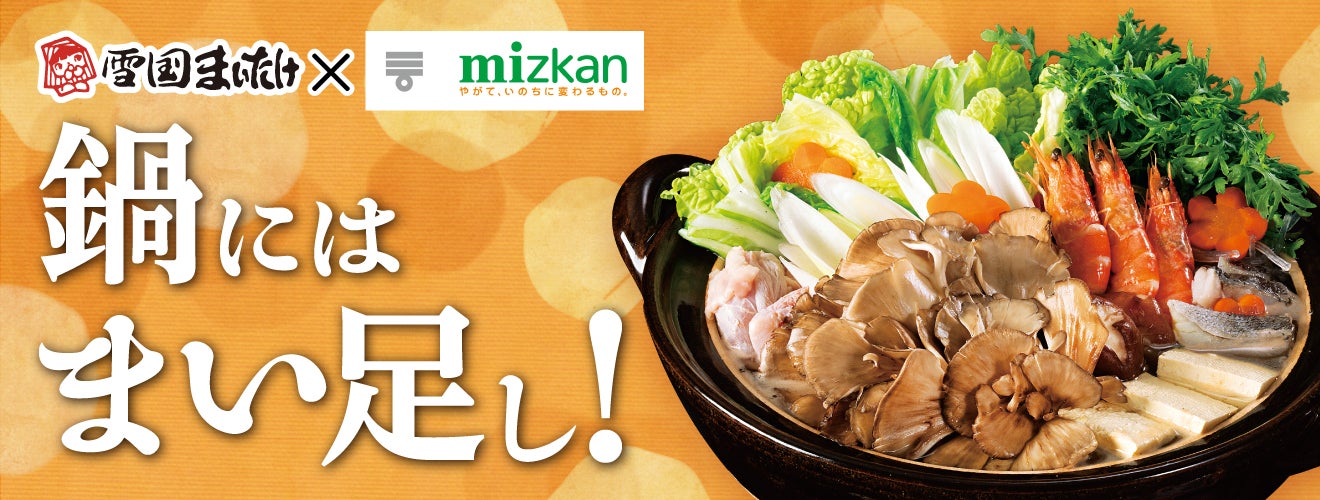 株式会社雪国まいたけ(本社:新潟県南魚沼市 代表取締役社長:湯澤尚史)は、近年高まる〆需要に合わせて、11月上旬より、店頭にて株式会社Mizkan(本社:愛知県半田市、代表取締役社長兼CEO:吉永 智征、以下:ミツカン)とのコラボにより、『雪国まいたけ極(きわみ)』と、『ミツカン 〆まで美味しい™鍋つゆ』を活用した、「鍋にはまい足し!」を提案する共同販促施策を展開致します。