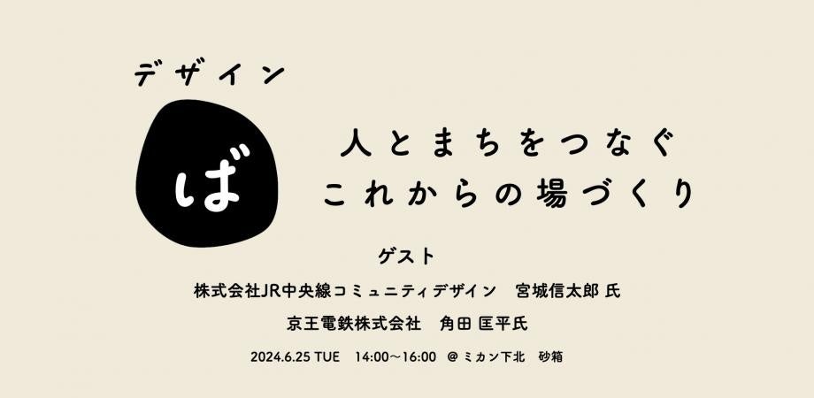 ゲストに、株式会社JR中央線コミュニティデザインの宮城氏、京王電鉄株式会社の角田氏を迎え、各社のこれまでの取り組みや今後の展望についてお話を伺い、参加者の皆さまと共に新たなアイデアや視点を共有することで、これからの場づくりに関するヒントを探ります。