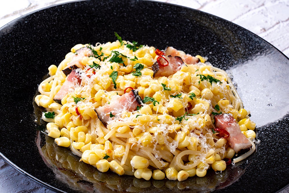 幻のとうもろこし「ピュアホワイト」で麺が見えない。北海道生パスタ専門店麦と卵だから実現できた贅沢パスタ。