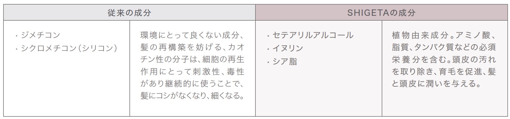 SHIGETA PARISは、「フレッシュスピリット」・「ワイルドグレース」の両製品ヘアケアシリーズの処方を見直し、効果をパワフルにしながらも処方をよりシンプルにすることに成功しました。革新的な新成分を搭載し、香り、テクスチャー、使いやすさにこだわっています。