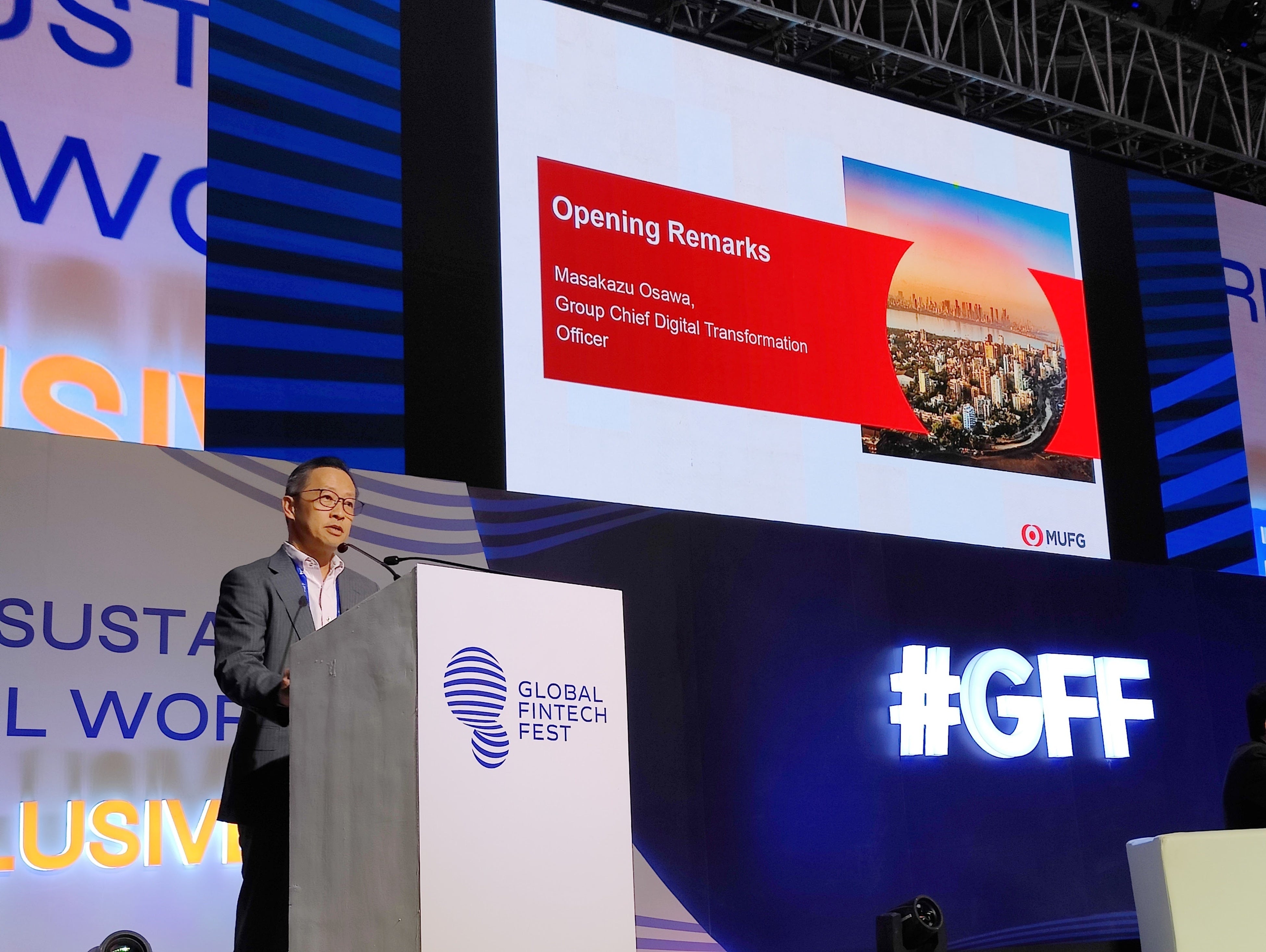 株式会社三菱UFJフィナンシャル・グループ(以下、MUFG)の連結子会社である株式会社三菱UFJ銀行(以下、三菱UFJ銀行)は今般、ムンバイで開催されたインド政府機関が主催する世界最大規模のフィンテックイベント、Global Fintech Festに参加しました。大澤Chief Digital Transformation Officer(CDTO)がMUFGのDX戦略についてプレゼンテーションを行い、主にインドのフィンテック企業に向けたMUFGのプレゼンス向上及びビジネスチャンスの拡大に繋がっています。急成長するインド市場を取り込みながらDX戦略を推進し、お客さまに提供するサービスの拡充を進めています!