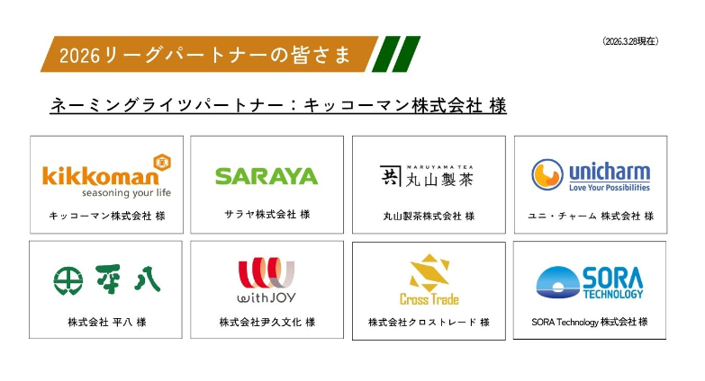 今シーズンも昨シーズン同様に、キッコーマン株式会社様にネーミングライツパートナーになっていただき、リーグ名は「KIKKOMAN presents キベラ A-GOAL リーグ 2026」として実施します。