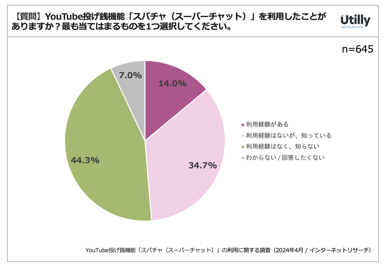 スパチャ(スーパーチャット)の利用率は14% | YouTube投げ銭機能「スパチャ」の利用に関する調査(2024年4月)