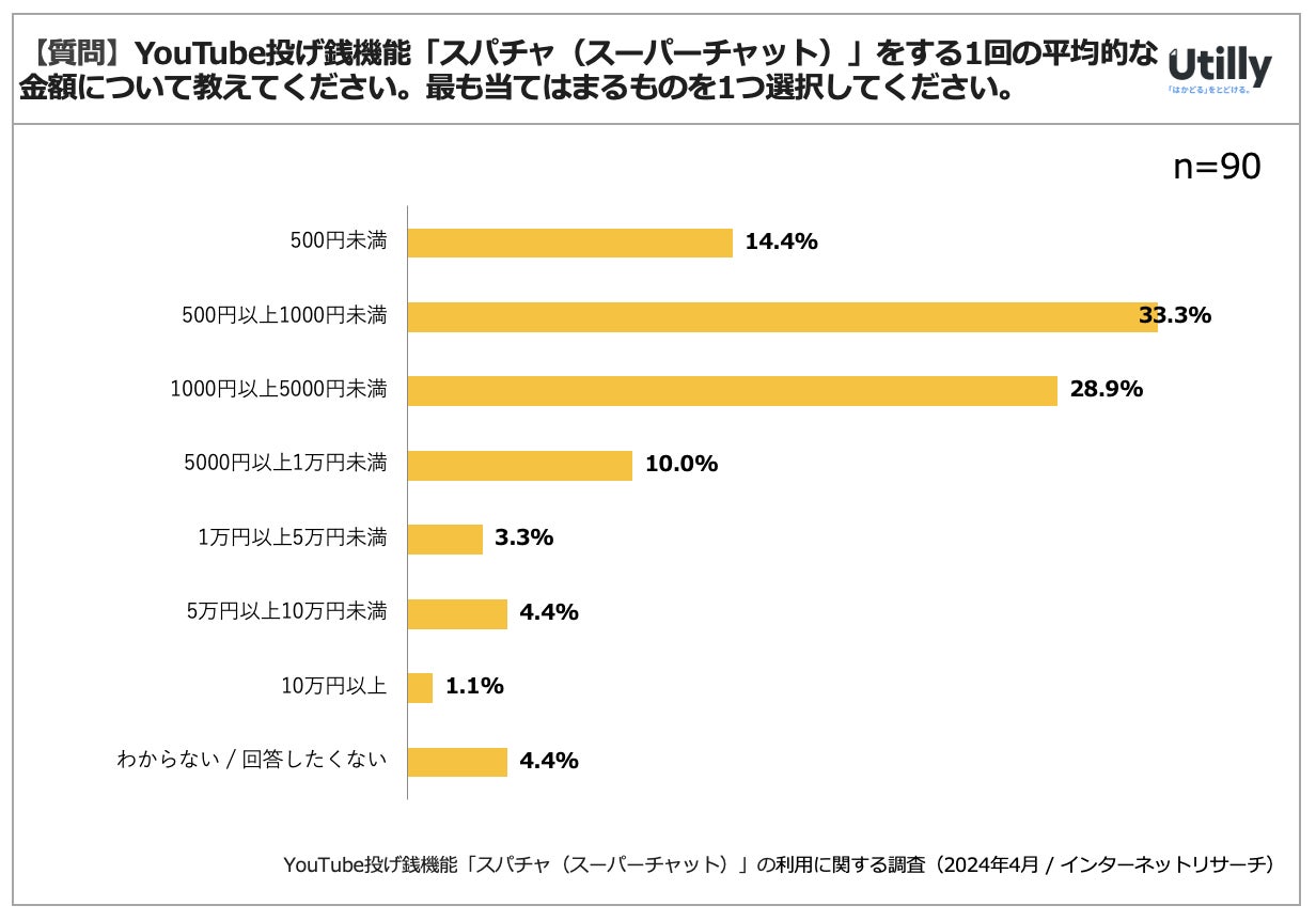 Q.YouTube投げ銭機能「スパチャ(スーパーチャット)」をする1回の平均的な金額について教えてください。最も当てはまるものを1つ選択してください。