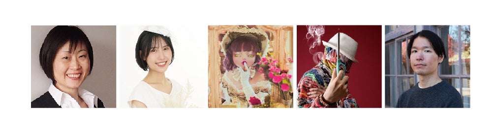 参加作家(敬称略)/millna (カワイイカルト高円寺)/大家美咲(やまなみ工房)/川邊紘子(やまなみ工房)/佐藤貫太(嬉々!! CREATIVE)/愛原るり子 (個人作家/コレクター)/