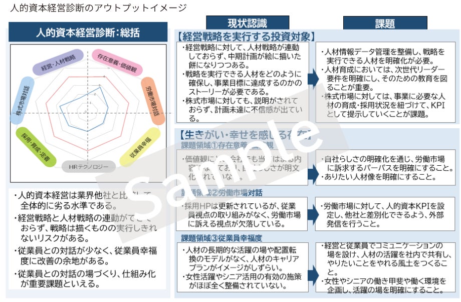 株式会社日本能率協会コンサルティング(本社:東京都港区・代表取締役社長:小澤勇夫、以下JMAC)は、このほど人材に関する経営課題を明確にし、各部が連携しながら課題解決を推し進めるためのコンサルティングプログラム『人的資本経営診断プログラム』をリリースいたしました。