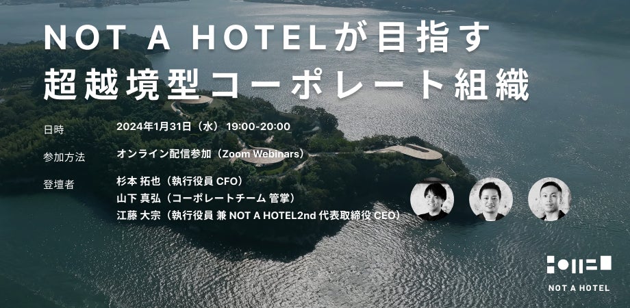 NOT A HOTELでは現在あらゆる職種にて積極的に採用をしております。コーポレート部門の採用強化の取り組みとして、採用イベントを1月31日(水)に開催します。これまでのコーポレート部門のチャレンジから、今後の新規ビジネスまで、さまざまなトピックについてお話しさせていただきます。