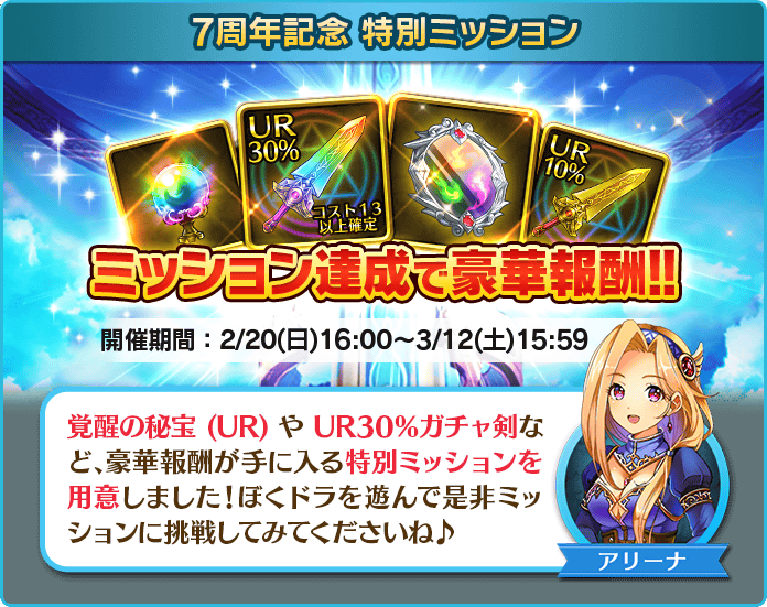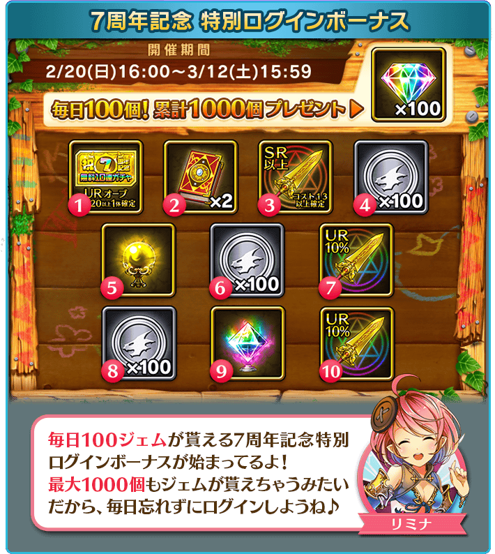 7周年記念ログインボーナス・プレゼント企画応募期間