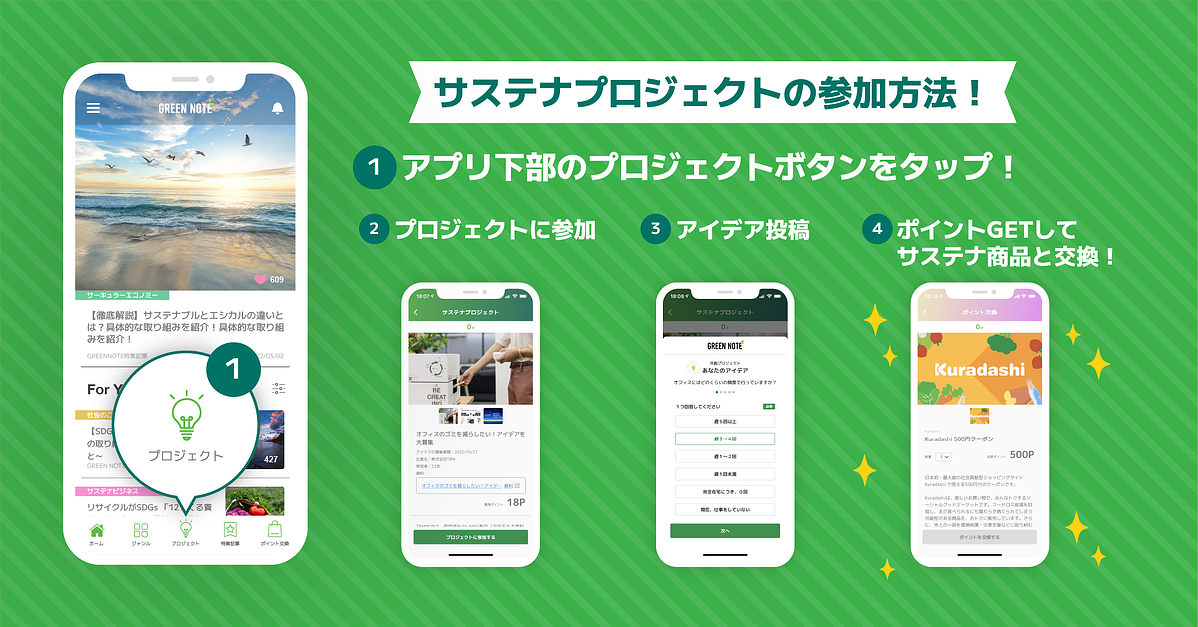 SDGs/サステナビリティ専門情報アプリ「GREEN NOTE」|2つの機能「プロジェクト」 「ポイント交換」を本格ローンチ