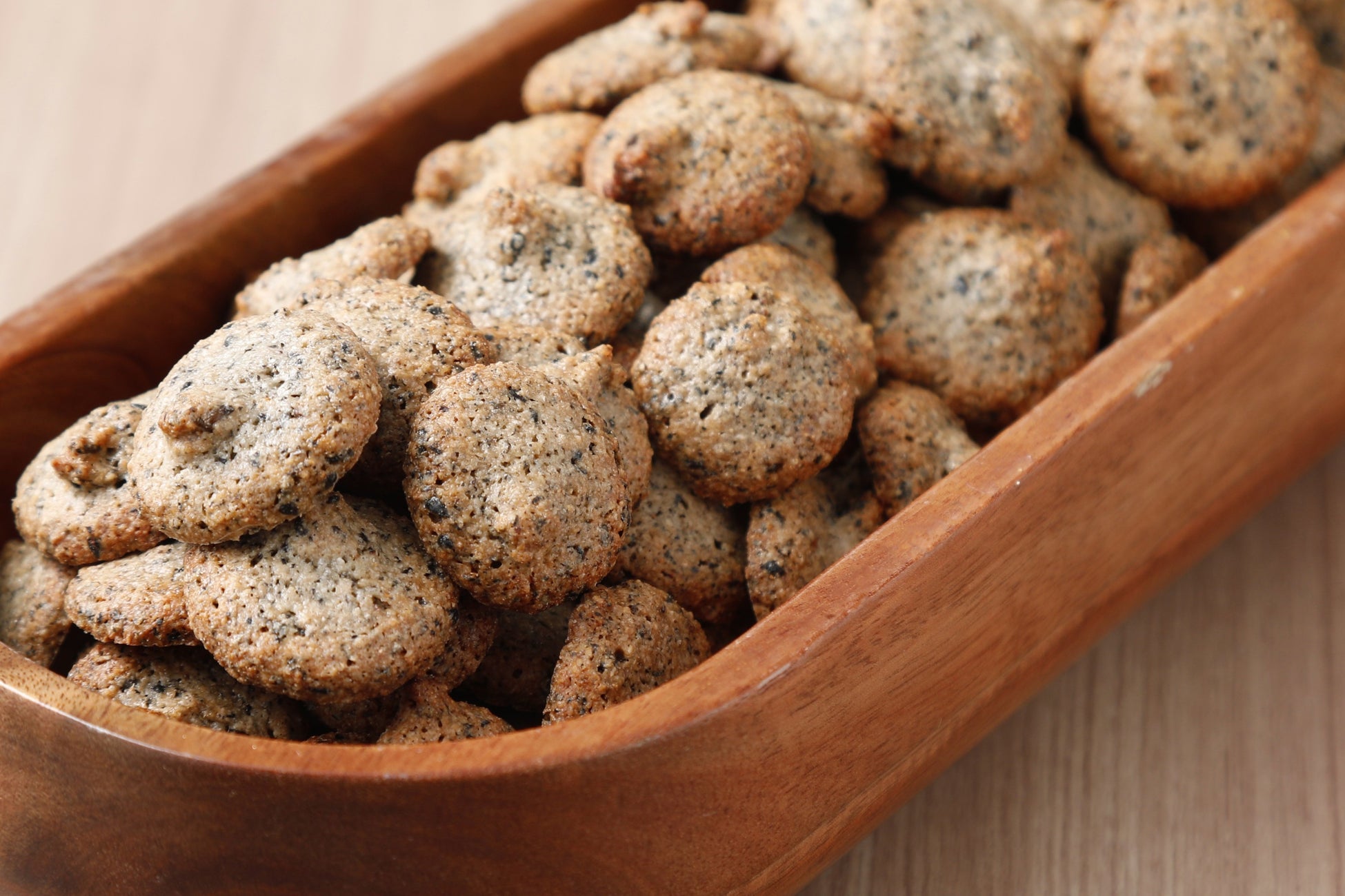 香ばしい黒ごま香る、サクサク食感のお菓子。つい手が止まらなくなるかわいい一口サイズに仕上げました。ジェラートと合わせるのもおすすめ。