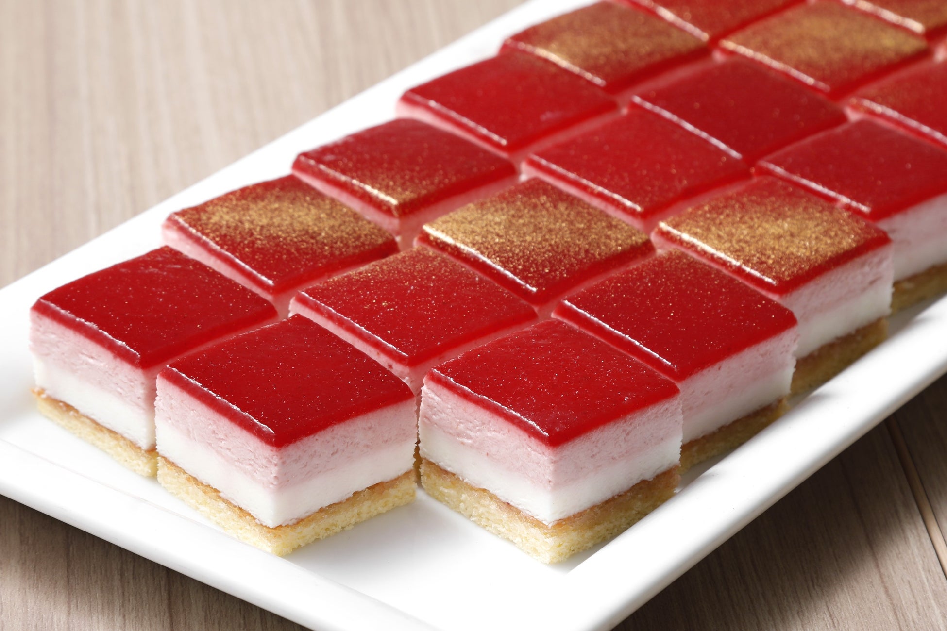甘酸っぱいいちごムースに、濃厚なホワイトチョコムースと鮮やかな彩りのいちごジュレを合わせたムースケーキです。