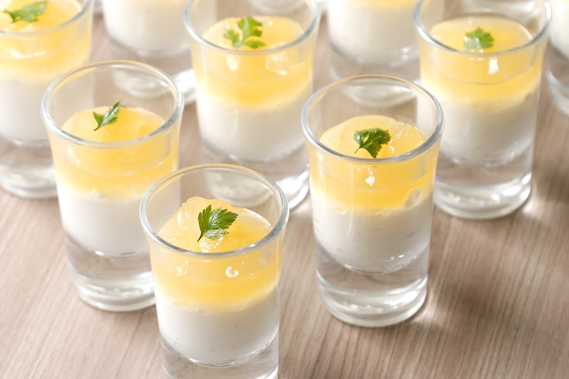 甘酸っぱいいちごの果肉が入った贅沢なジュレ。プチプチとした食感が楽しく、食べ終わった後もいちごの余韻が広がる一品です。