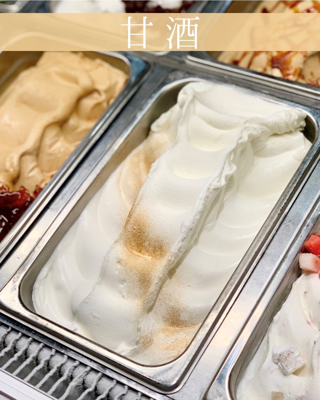 八海山の酒粕をたっぷり入れた甘酒味のジェラート。