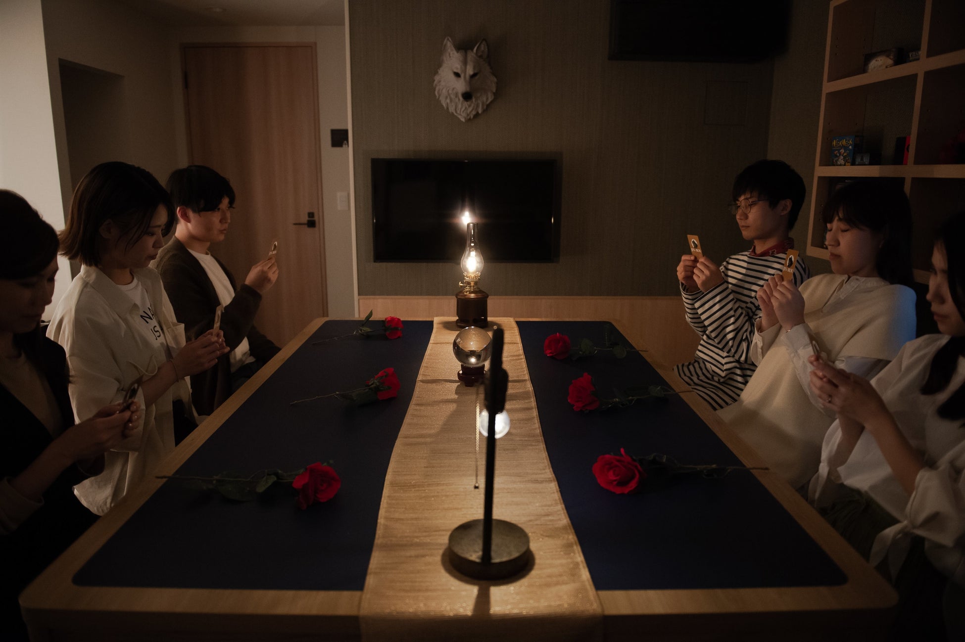 人狼ゲームとマーダーミステリーをより楽しめるお部屋。大人数でプレイが必要なゲームも、ここならみんなで集まり一晩中没入できます。2ベッドルームの客室は天国部屋や密談部屋として活用し、ゲームに使う薔薇の小道具を用意。宿泊者は5種類のマーダーミステリーから1つを選べます。