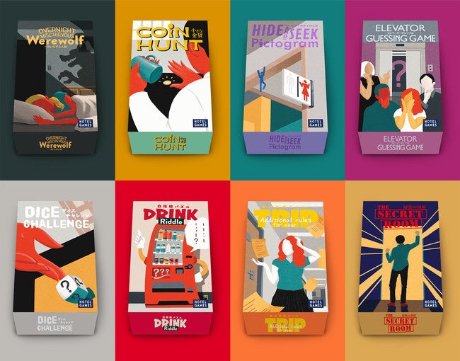 人気クリエイター集団が考案した『MIMARU大阪 難波STATION』ホテル専用のオリジナルゲーム。2階ロビーフロアと宿泊部屋で遊べる8つのゲーム集です。夜の間に事件が起こる一泊しないと遊べない「一泊いたずら人狼」ゲームや街を使った「旅の追加ルール」ゲームなど、宿泊したみんなで遊べる仕掛けを用意しています。詳細は、以下サイトをご覧ください。
