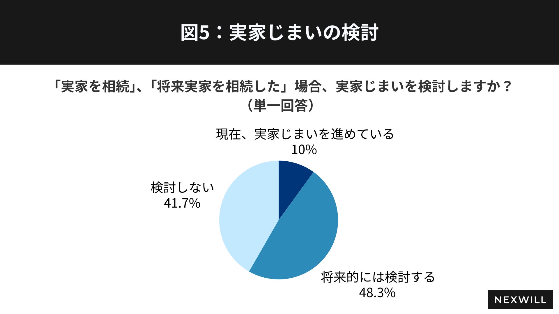 ・約半数が実家を相続予定である一方、約7割が相続後の実家の扱いを具体的に決められていない
