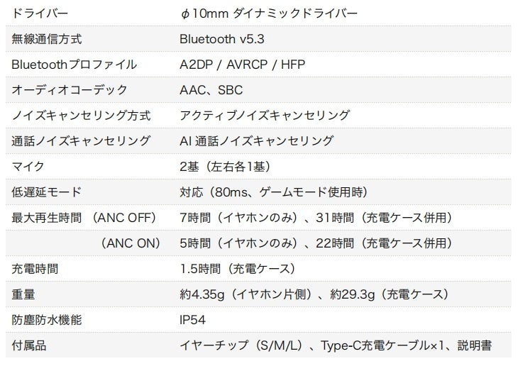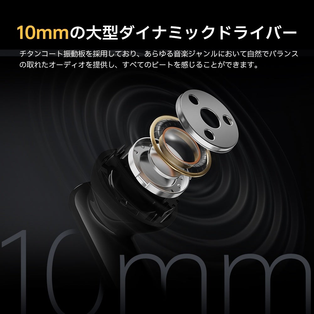 カナル型完全ワイヤレスイヤホンとしては大口径のφ10mmダイナミックドライバーを採用、臨場感溢れるサウンドをお楽しみいただけます。Bluetoothオーディオコーデックは必須のSBCにくわえAACをサポート、iPhoneシリーズでもベストコンディションで音楽再生が可能です。