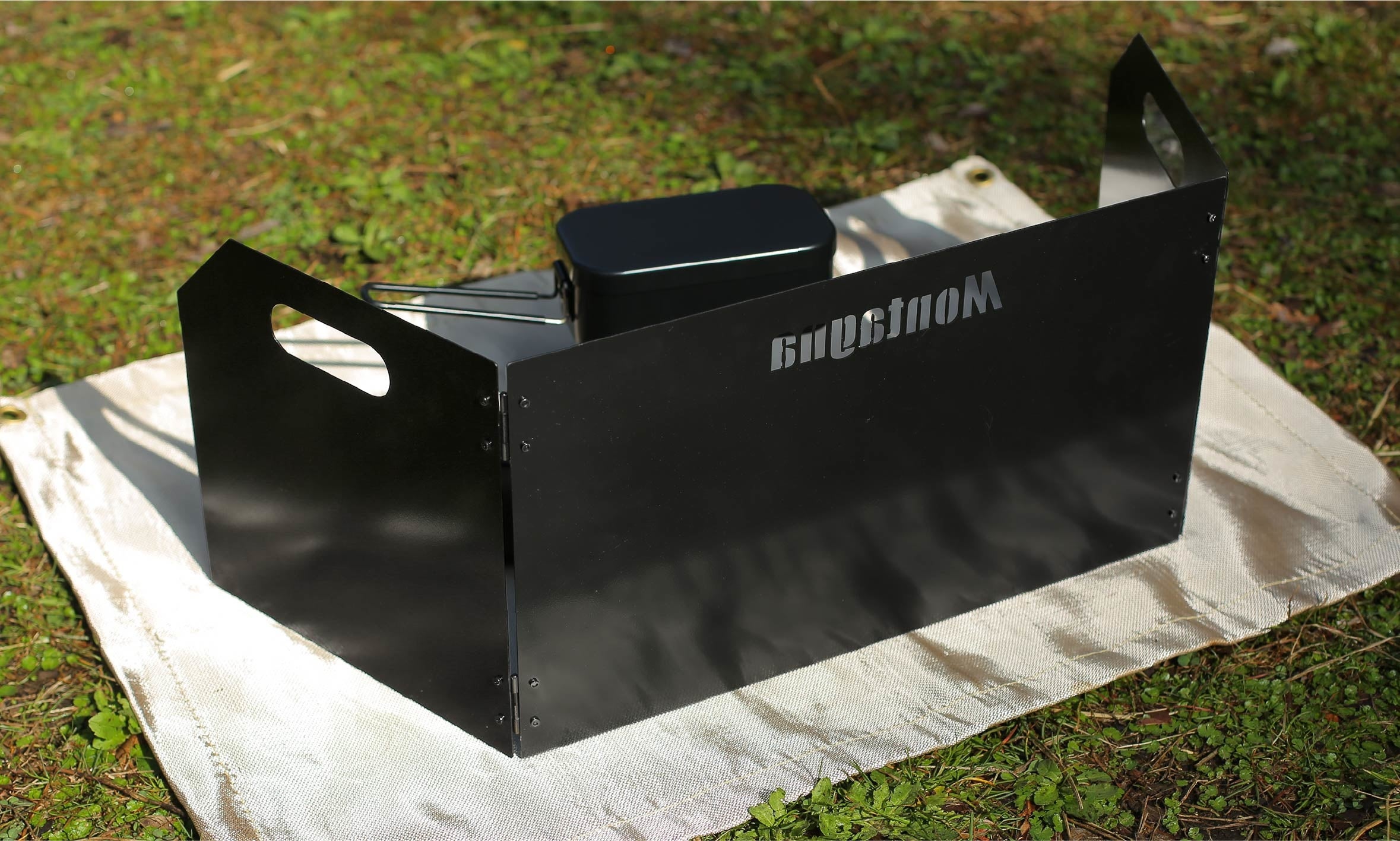 特徴:最長約93cmまでワイドに広がって風を防ぐウィンドスクリーン。鉄製のパネルがコンロをしっかりと囲んで、キャンプ調理や焚き火の燃焼を安定させます。折りたたんでフラットに収納可能、持ち運びに便利な収納袋付きで携帯性が抜群。