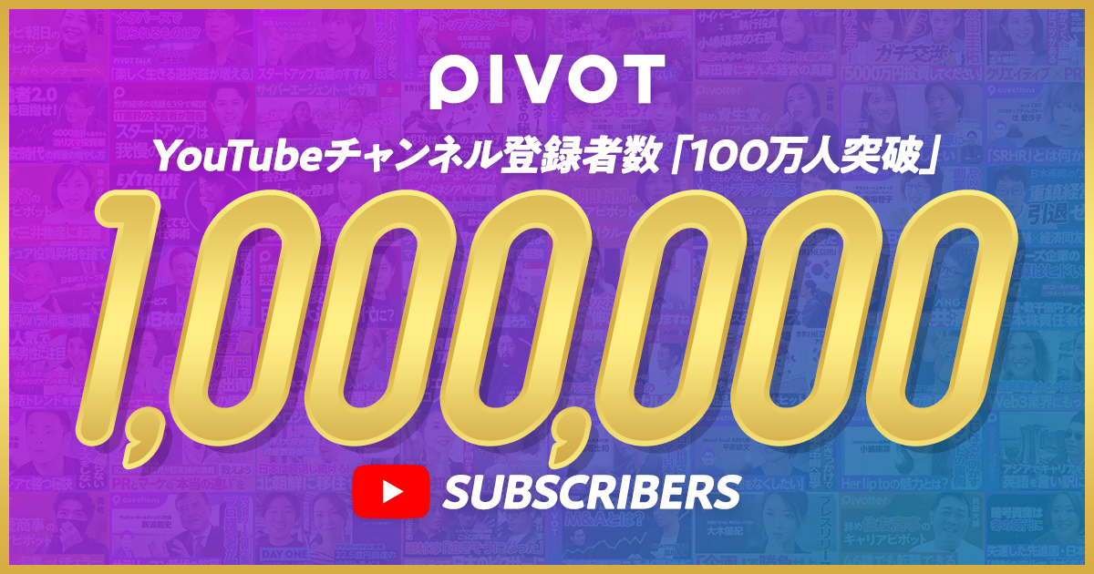 ビジネス映像メディア「PIVOT」、YouTube登録者数が100万人を突破