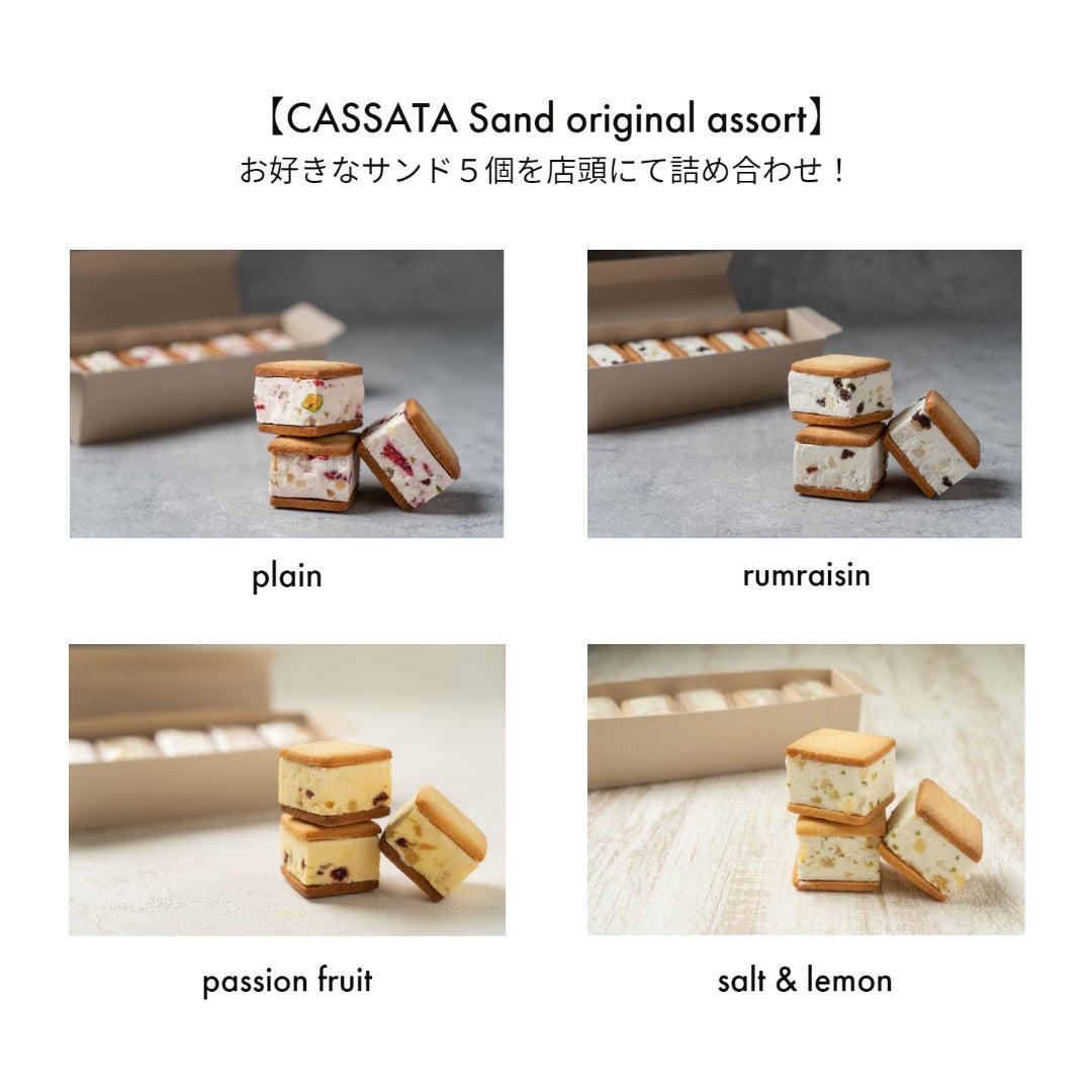 ポップアップストア限定の「CASSATA Sand original assort」は、お客様ご自身でお選びいただいた「CASSATA Sand」5個を、スタッフが店頭にて箱にお入れするスペシャルなサンドBOXです。