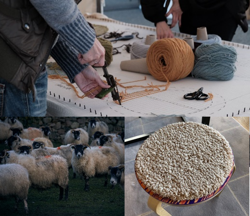 カーペットの製造過程において中途半端に余ってしまい、やむを得ず破棄する残糸を有効活用したウールチェアパッド〈WOOL CHAIR PAD〉を作るワークショップを開催します。