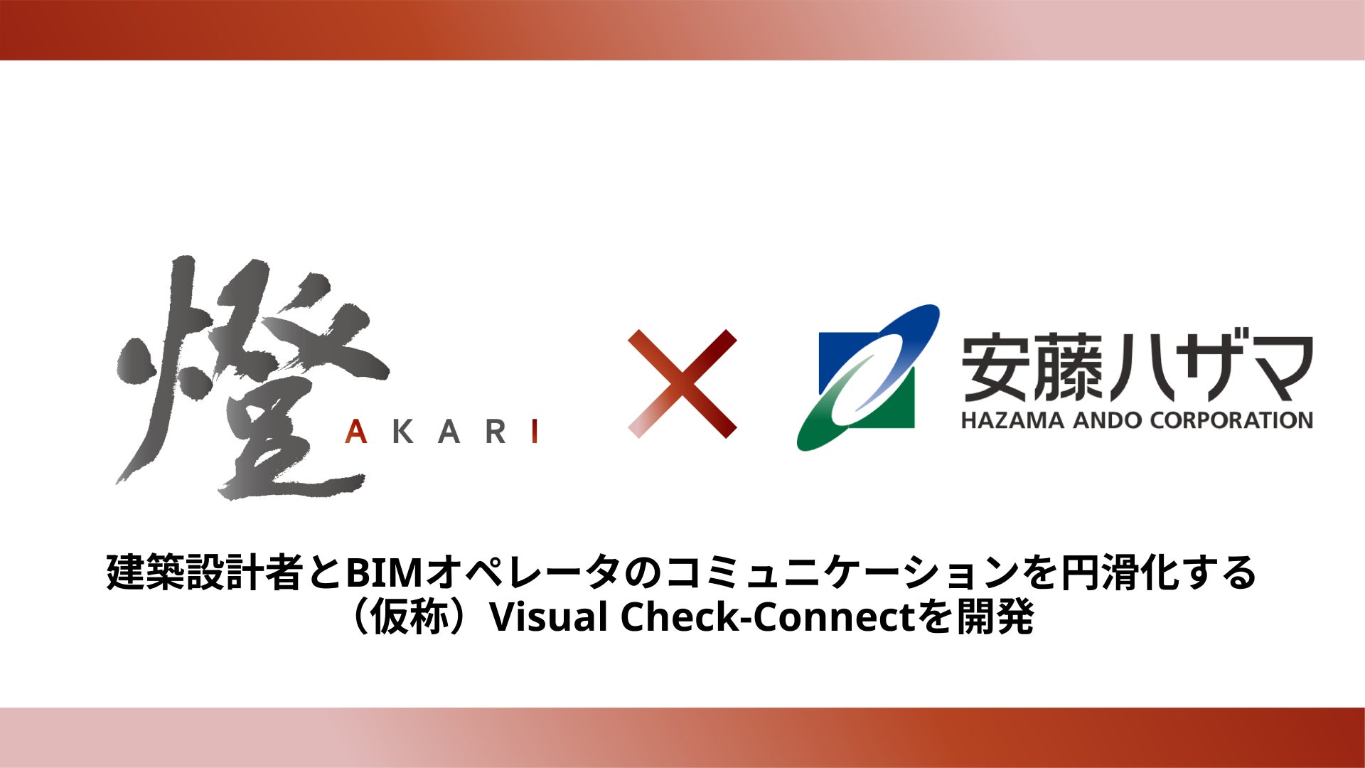 燈株式会社(本社:東京都文京区、代表取締役CEO:野呂侑希、)は、株式会社安藤・間(本社:東京都港区、代表取締役社長:国谷一彦、以下、安藤ハザマ)とともに、建築設計者(以下、「設計者」)とBIMオペレータ間での設計指示伝達の円滑化や、設計レビュー業務の効率化を目的として、ブラウザを通じたBIMの設計指示や効率的なビジュアルチェックを可能にするシステム、(仮称)Visual Check-Connectを開発しました。